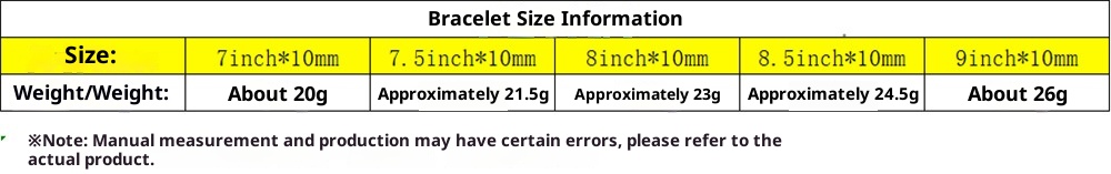 Purity: Bracelet 7 inches (length cm), bracelet 8 inches (length cm), bracelet 9 inches (length cm)