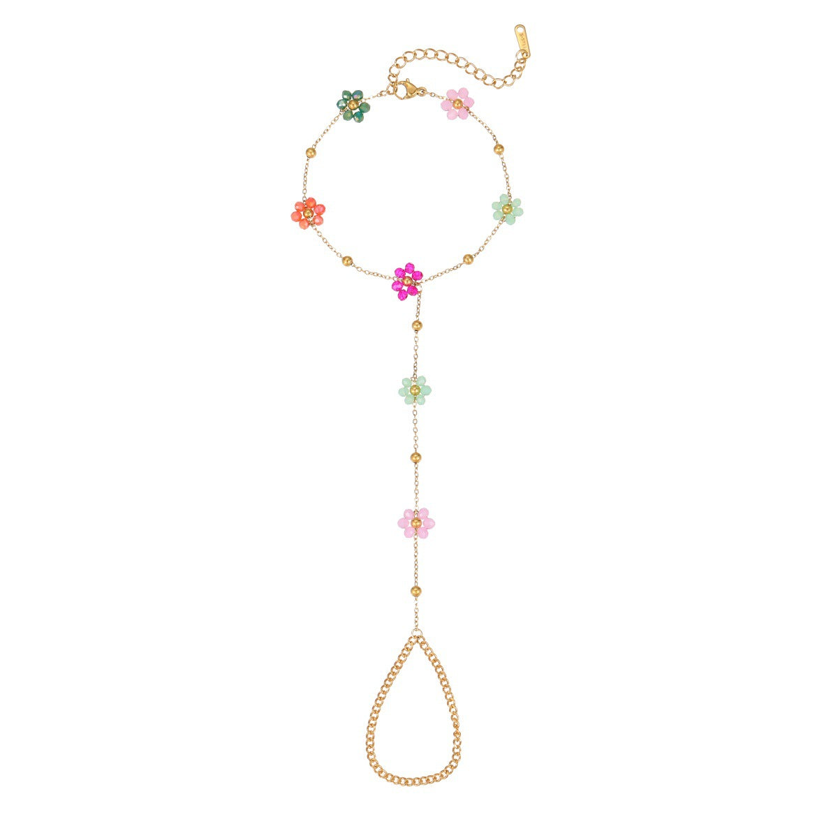 Beaded Flower Finger Ring Stainless Steel Bracelet Real Gold Electroplated Bracelet