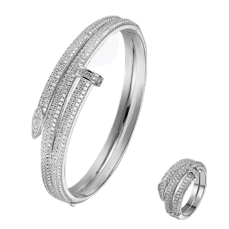 Product information: Material:Copper Style: Europe and America Style: male and female Modeling: geometric Processing technology: inlaid with zircon Color: gold [bracelet+number 7 ring], gold [bracelet+number 8 ring], gold [bracelet+number 9 ring], silver [bracelet+number 7 ring], silver [bracelet+number 8 ring], silver [bracelet+number 9 ring] Packing list: Bracelet+ring X1PCS